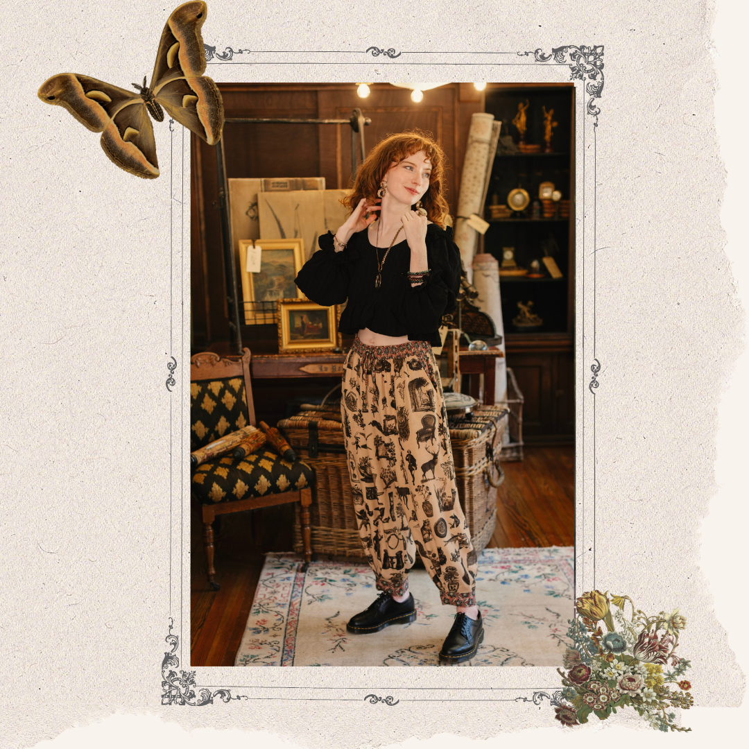 Our dreamy new Poet Pants are made from a lightweight, drapey viscose crepe that moves like poetry in motion! With a flowier cut than our Artist Pants, they feature an elastic waistband with drawstring, roomy pockets, and a breezy 3/4 length. The gently tapered cuffs create a billowed silhouette reminiscent of vintage artist smocks— relaxed, romantic, and ready for adventure. Wear them with sandals and a tank for wandering cobblestone streets, or dress them up with oxfords and a structured blouse for an effortlessly bohemian vibe. Warning: may inspire spontaneous sonnet-writing ;)