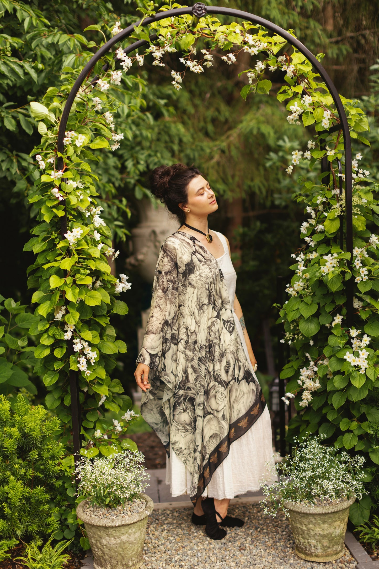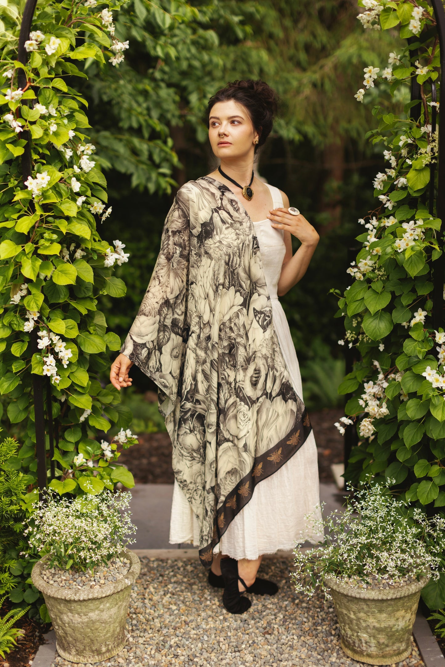 A first for us in its totally neutral palette of honeyed ivory and black, Honey & The Moon is a departure in tone, but not in spirit. Rooted in the hush and harmony of overgrown gardens and blooming with old-world charm, it invites you to slip into the romance of another time — where beauty was built into the bones of things, and every corner held a story waiting to be found.
